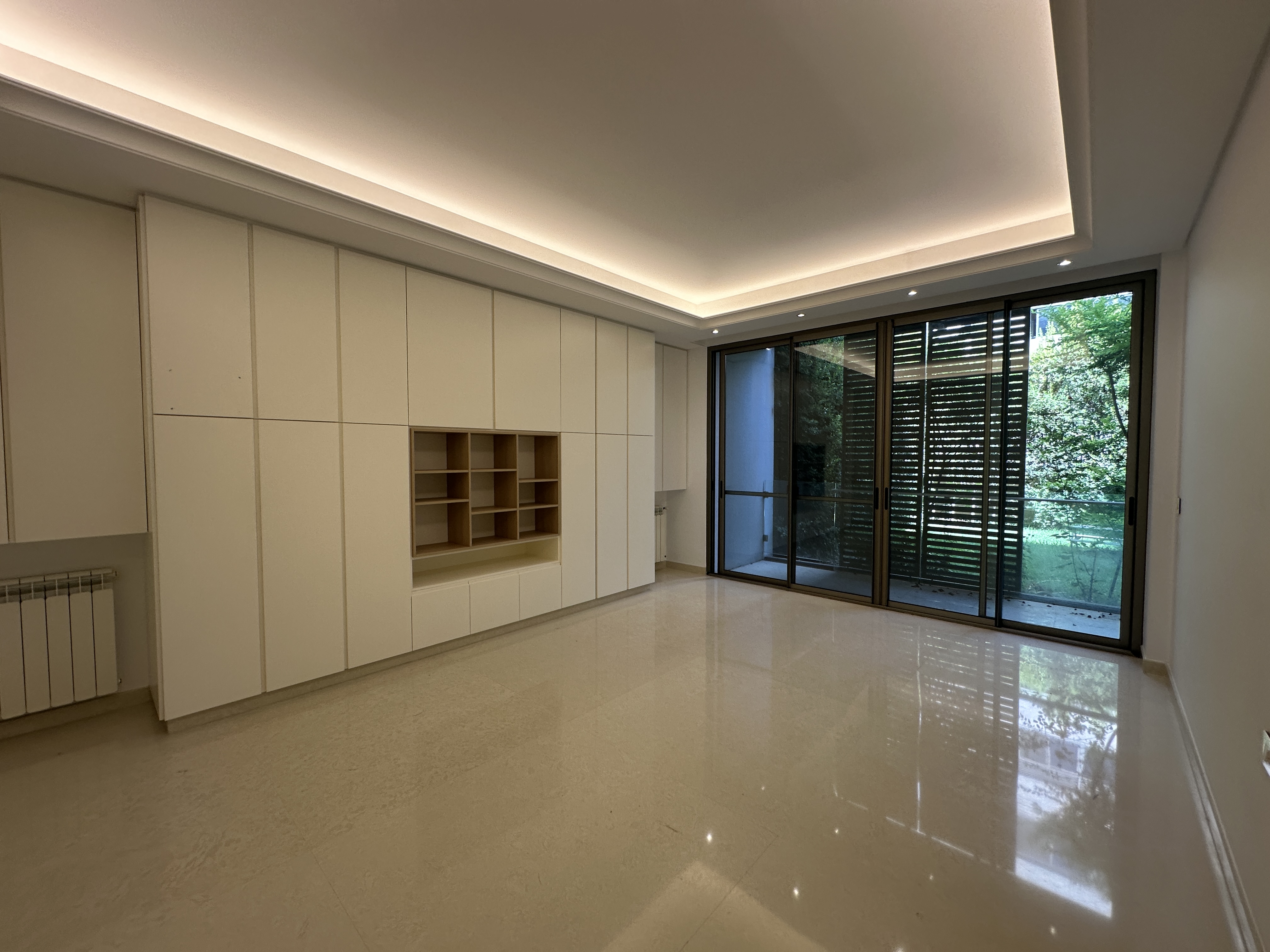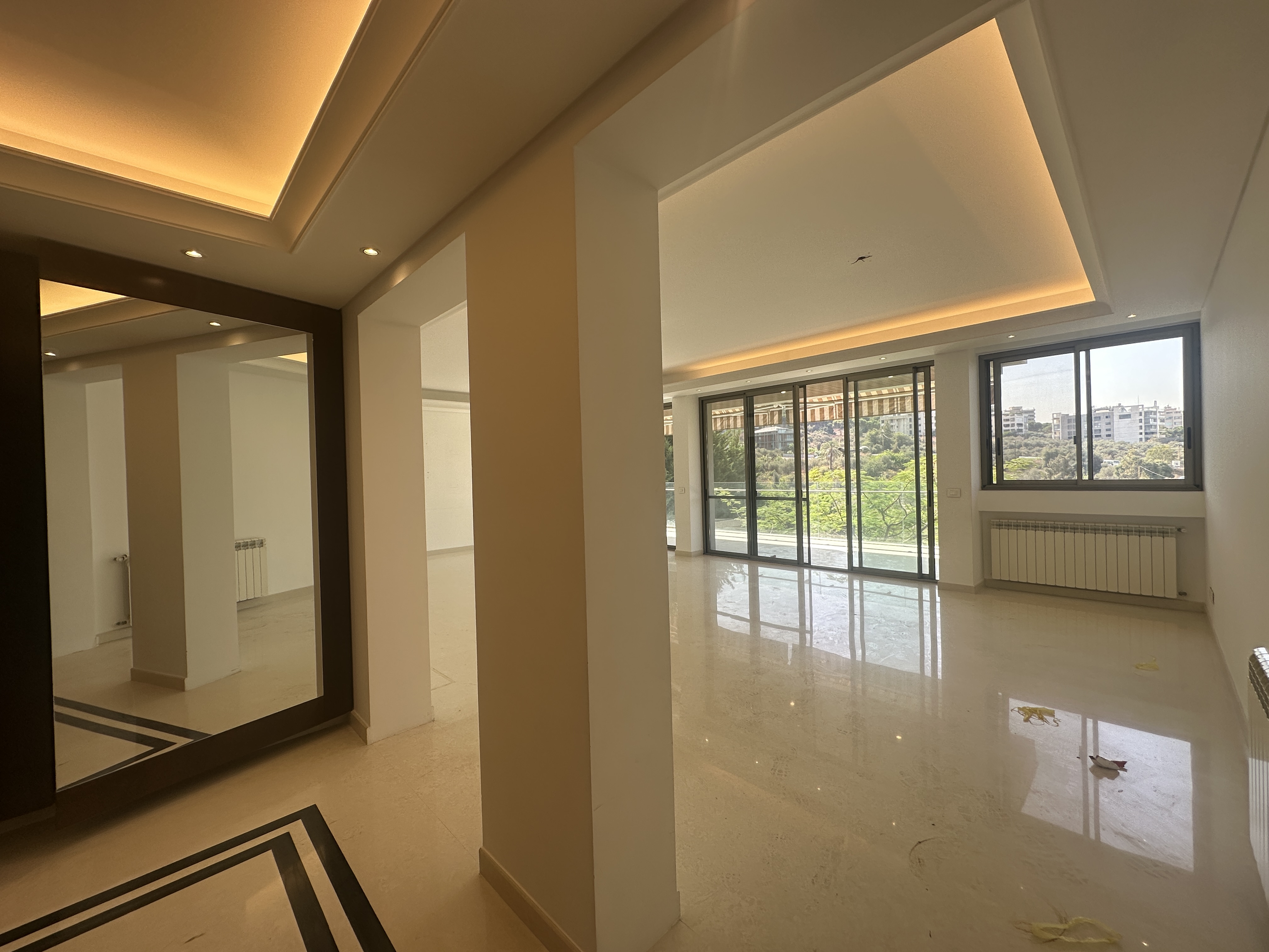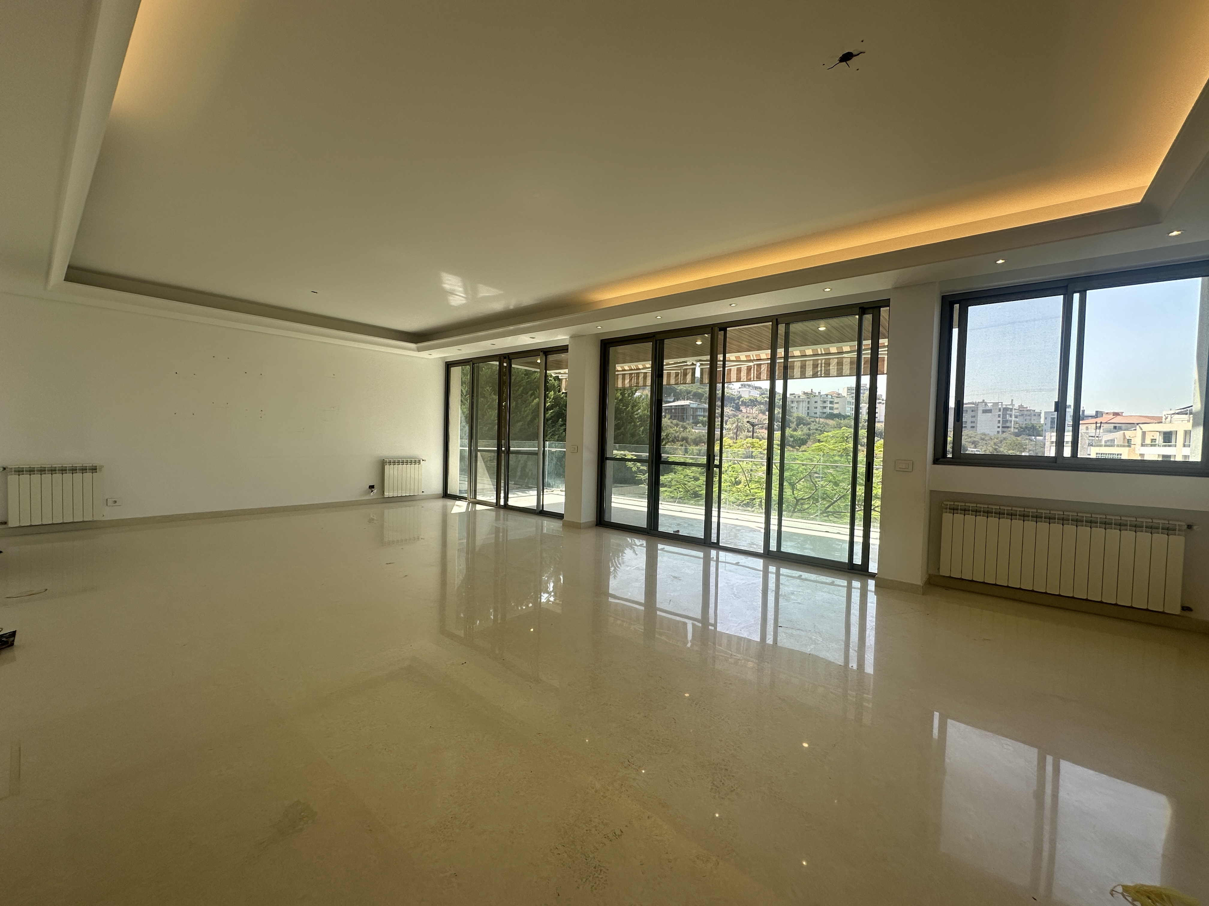 Spacious first-floor apartment for rent in Hazmieh offering 250 SQM of elegant living space with a private terrace and garden.