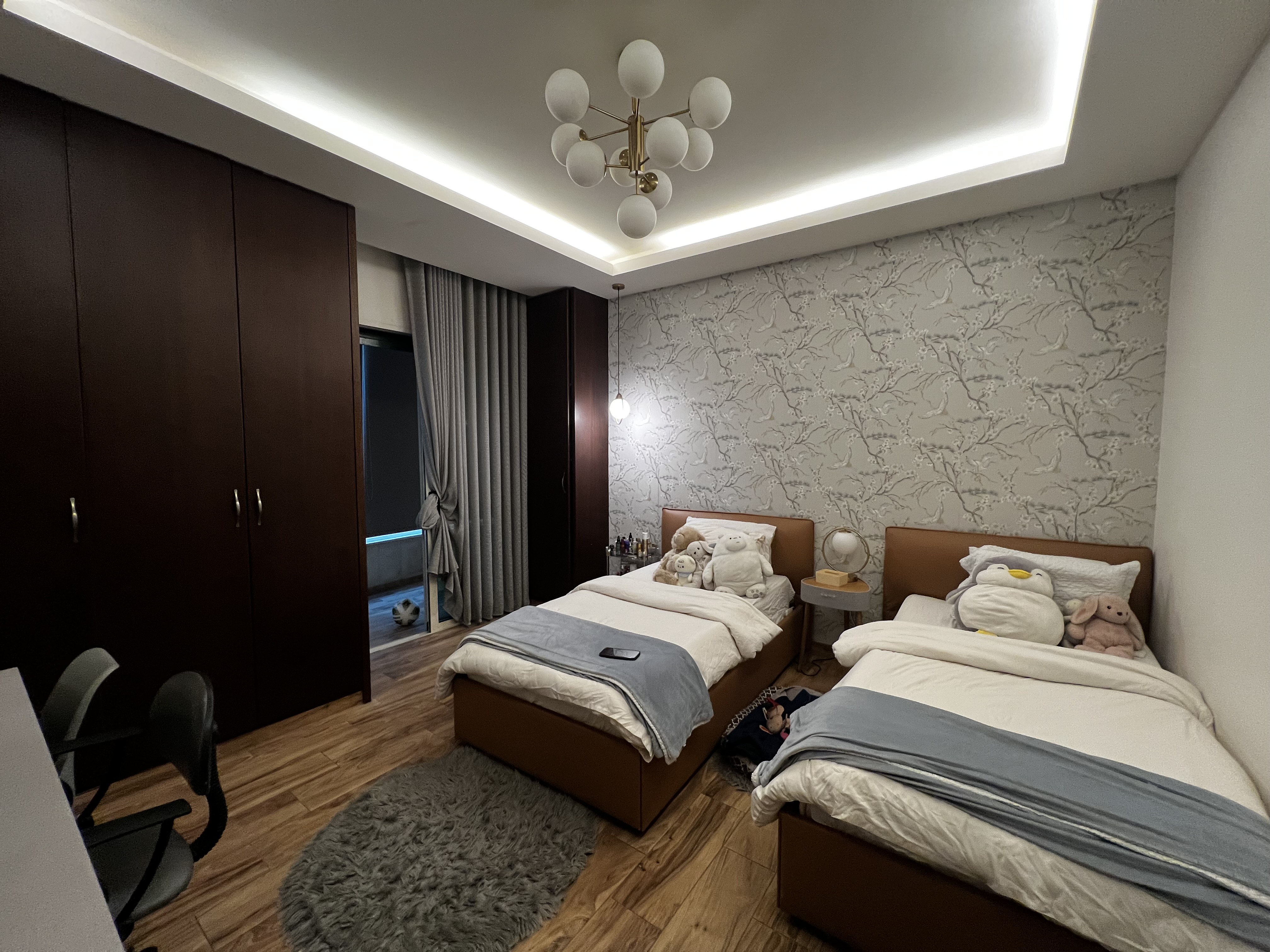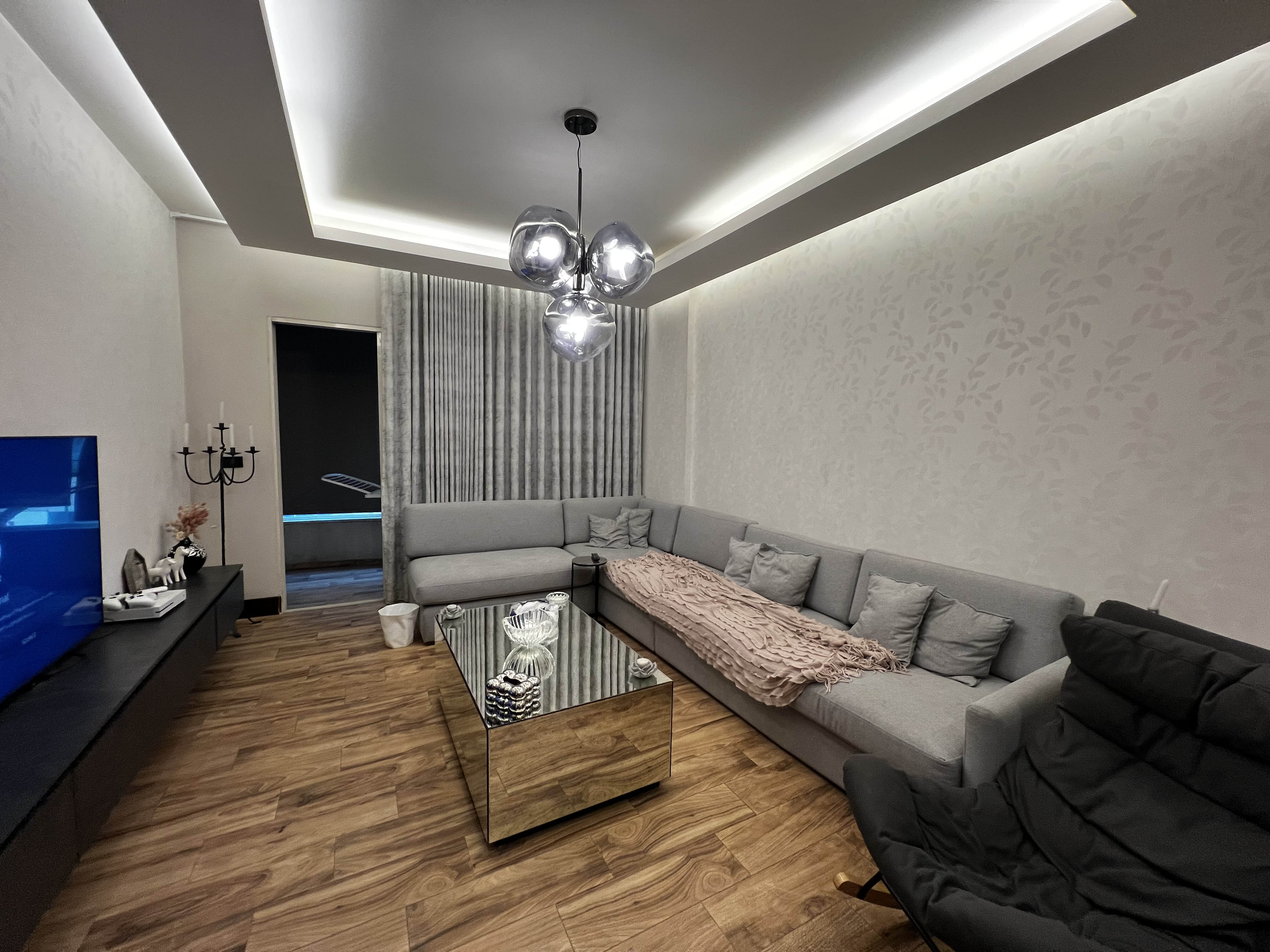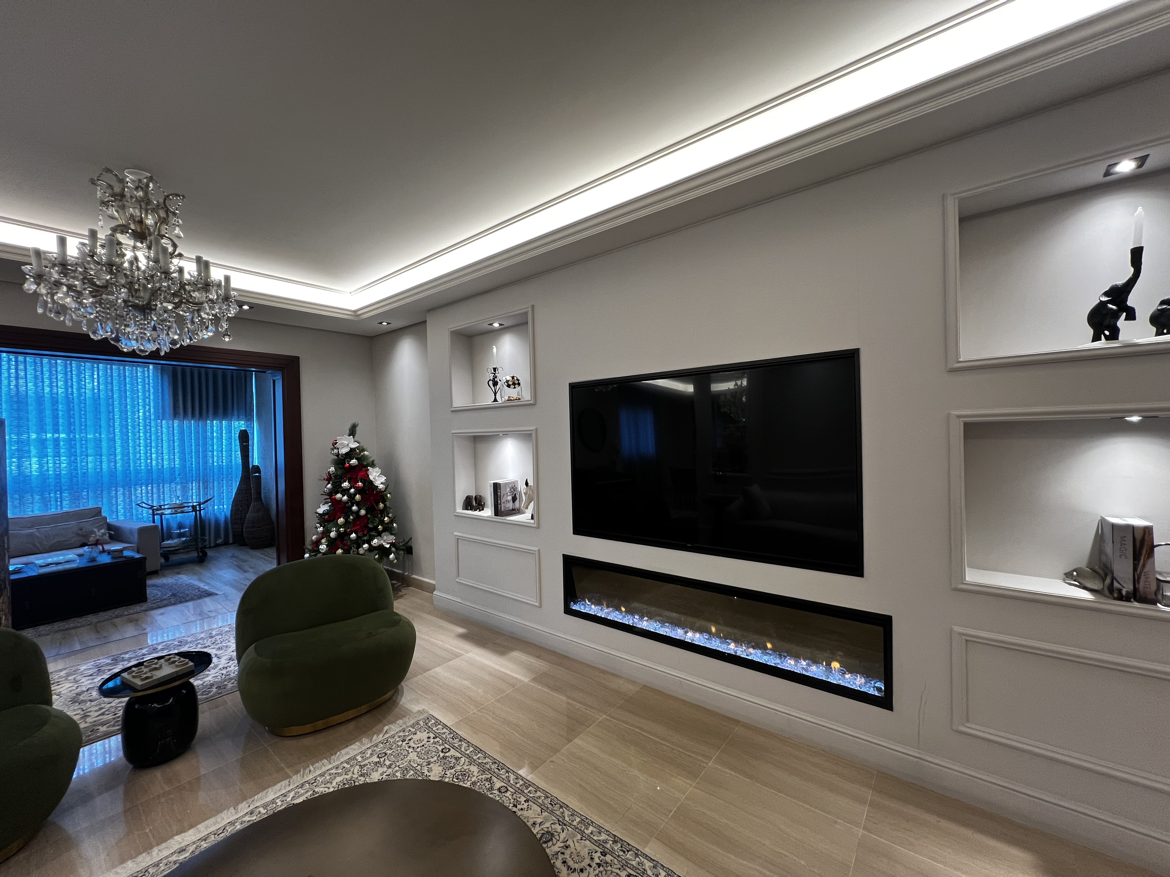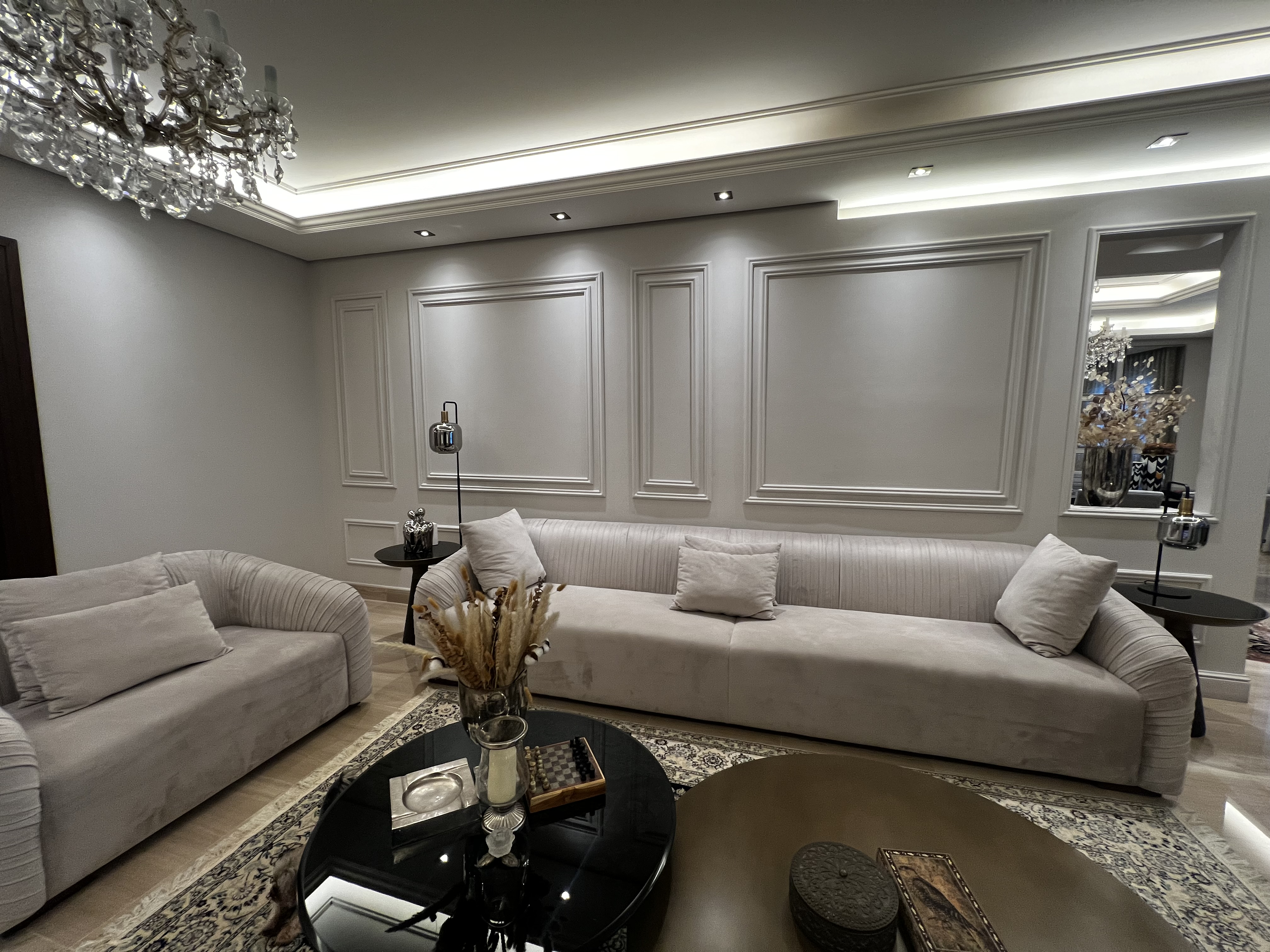 The apartment includes a well-designed kitchen, a large living room, a formal dining room, a TV room, and an additional sitting room, providing multiple areas for relaxation and entertaining. The layout is ideal for both family living and hosting guests.