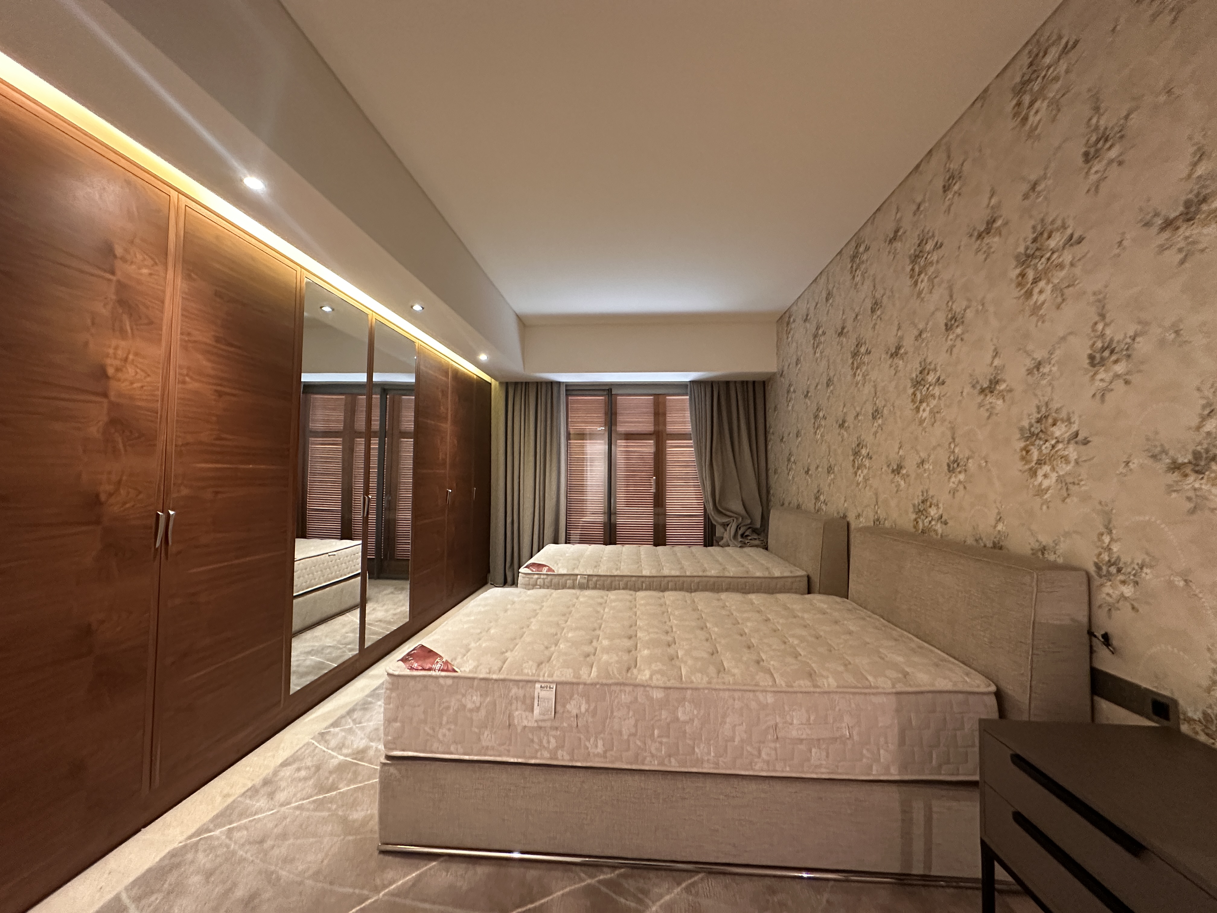 Residents enjoy three private parking spaces, two storage rooms, and access to a common pool, gym, garden, and 24-hour security.
